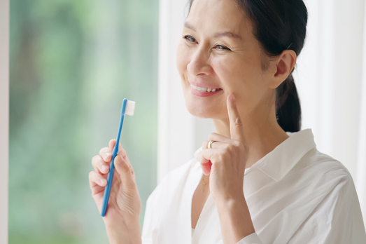 健康な両隣の歯を大きく削る必要がないのが、入れ歯の大きな特徴です。また、取り外しができるため、毎日ご自身で隅々まで清潔にお手入れが可能。